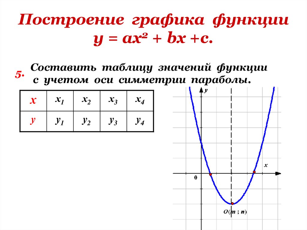 1. Определить направление ветвей параболы.8. Построение графика функции у = ах2 + bх +с.