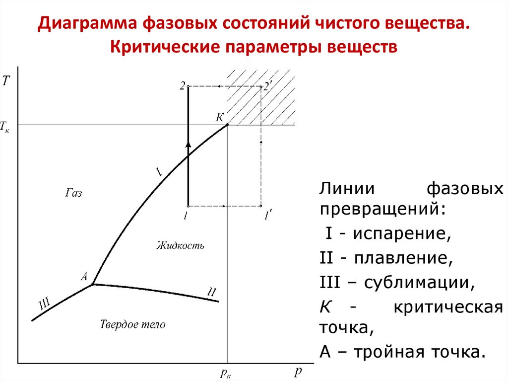 2. Диаграмма фазовых состояний чистого вещества. Критические параметры веществ