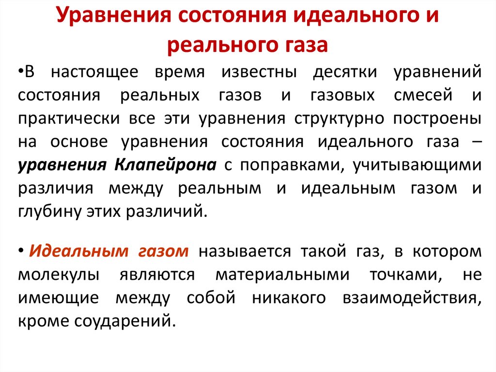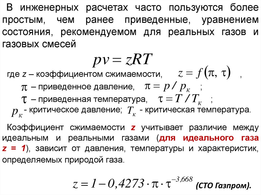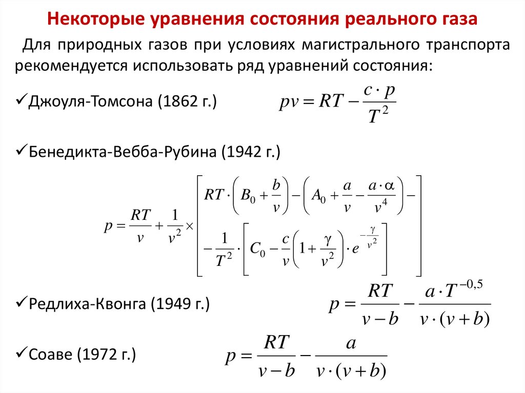 Для природных газов при условиях магистрального транспортарекомендуется использовать ряд уравнений состояния: