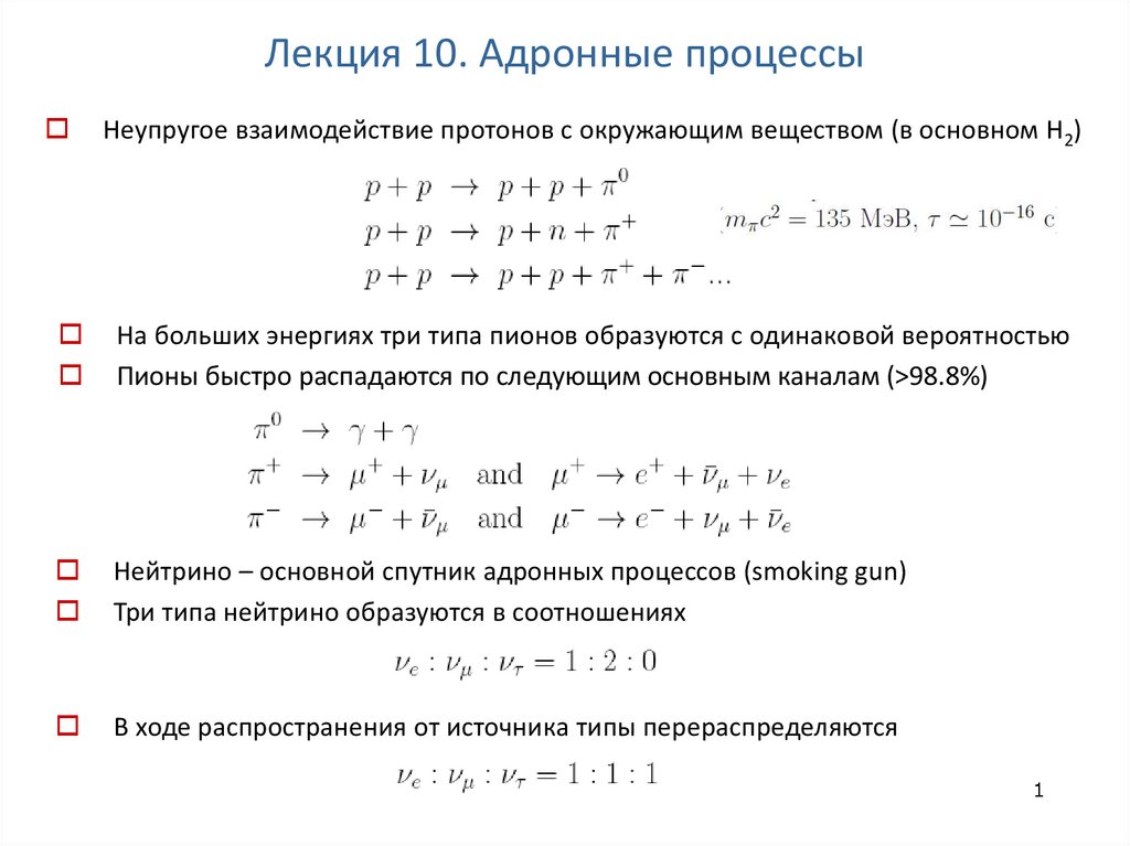 Лекция 10. Адронные процессыНеупругое взаимодействие протонов с окружающим веществом (в основном H2)