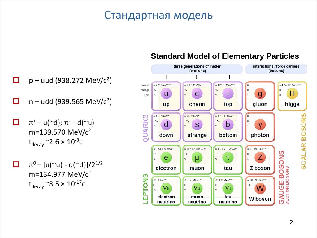 Средние времена жизни τ π+/-= 2.5×10-8 с, τ π0= 8.4×10-17 с