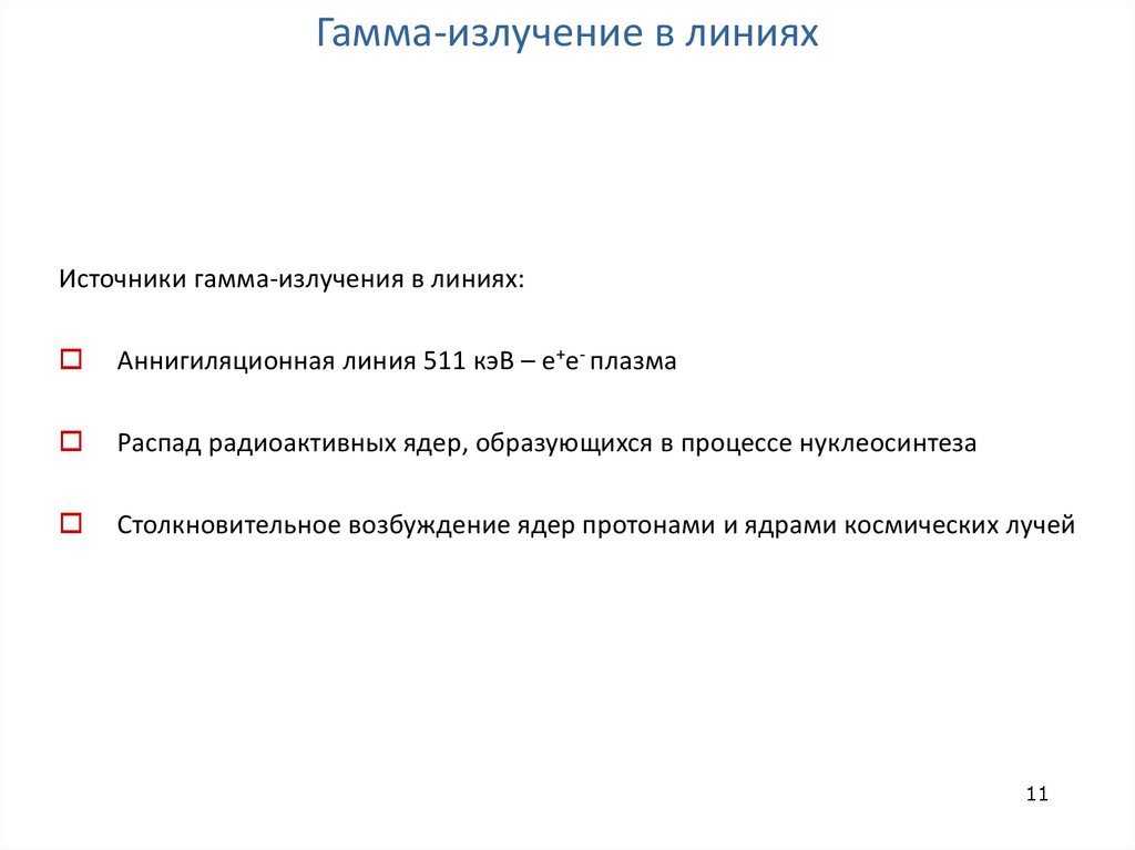 Гамма-излучение в линияхИсточники гамма-излучения в линиях: