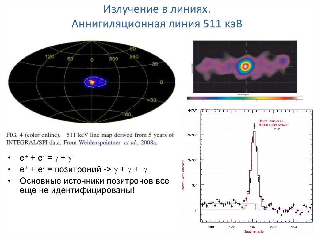 Излучение в линиях.Аннигиляционная линия 511 кэВ