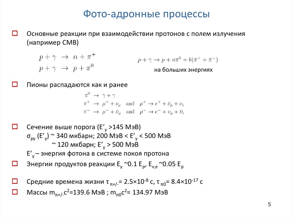 Фото-адронные процессыОсновные реакции при взаимодействии протонов с полем излучения