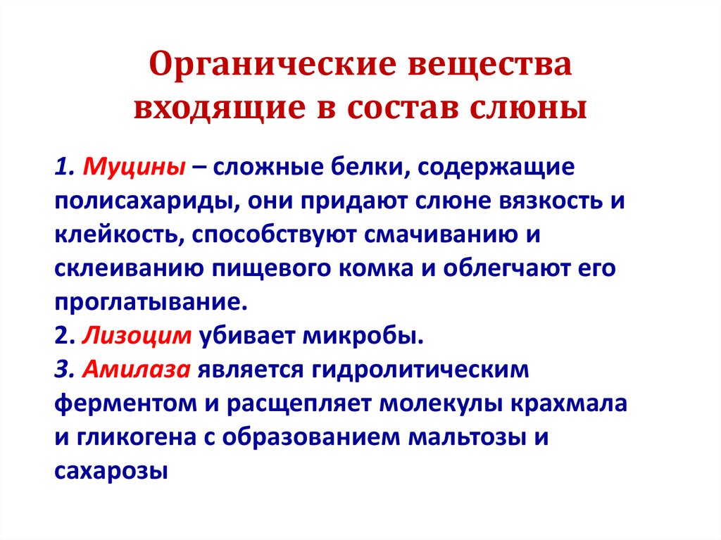 Органические веществавходящие в состав слюны