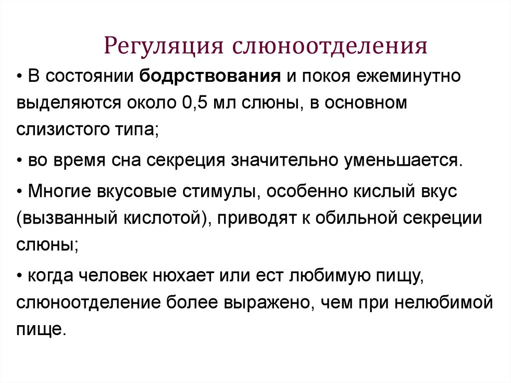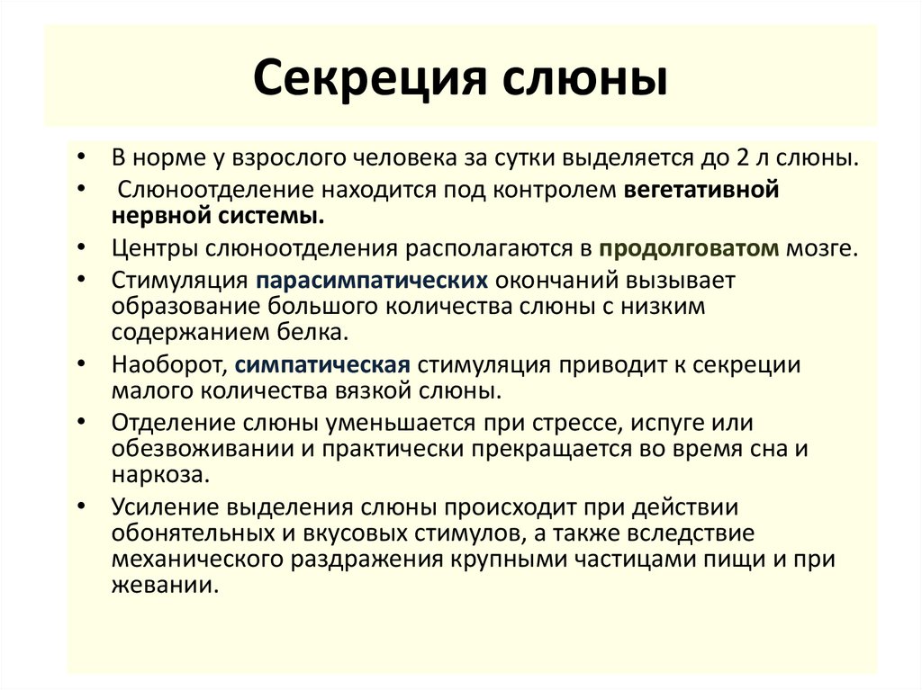 • Параллельно с этим происходит рефлекторноеотделение слюны околоушной, подъязычной и