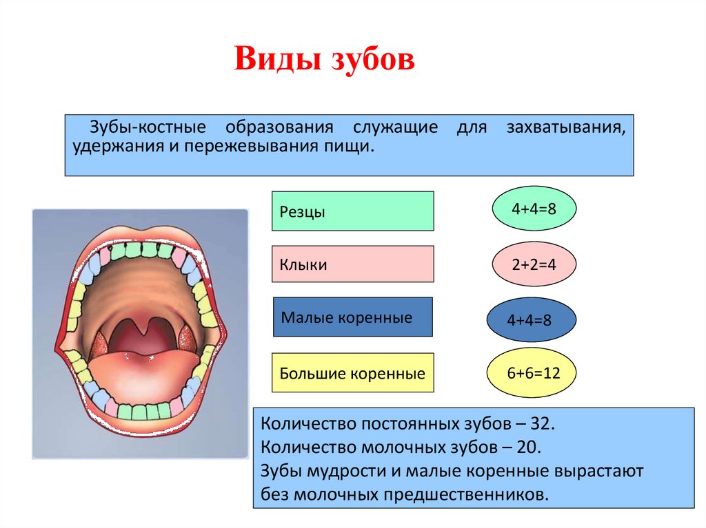 • Зубы разрывают, размельчают и