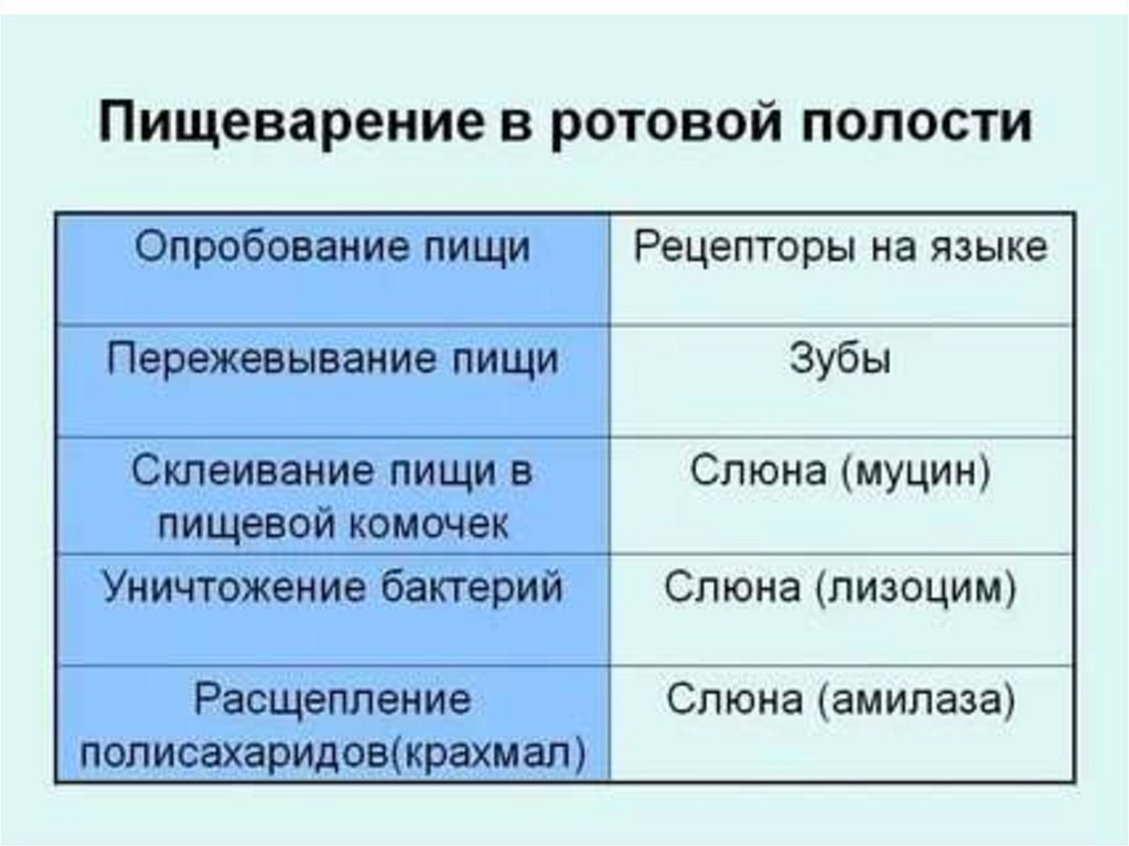 Пищеварениев ротовой полости