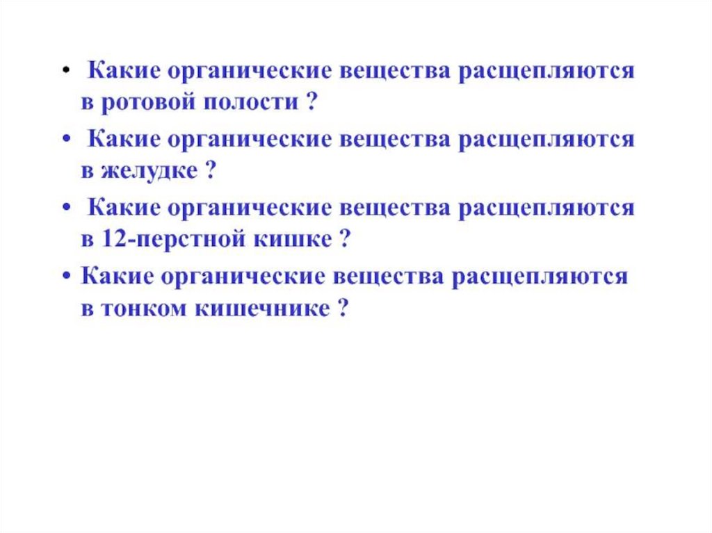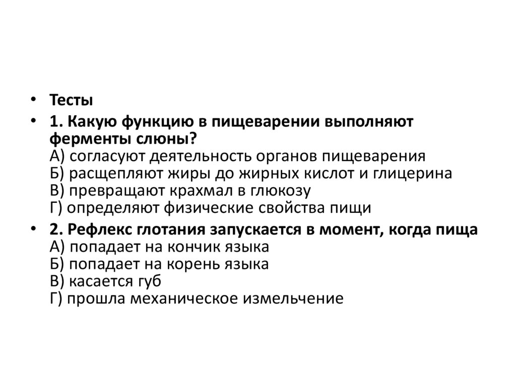 • Тесты• 1. Какую функцию в пищеварении выполняют
