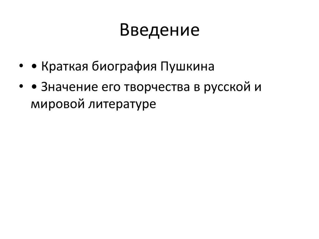 Введение• • Краткая биография Пушкина
