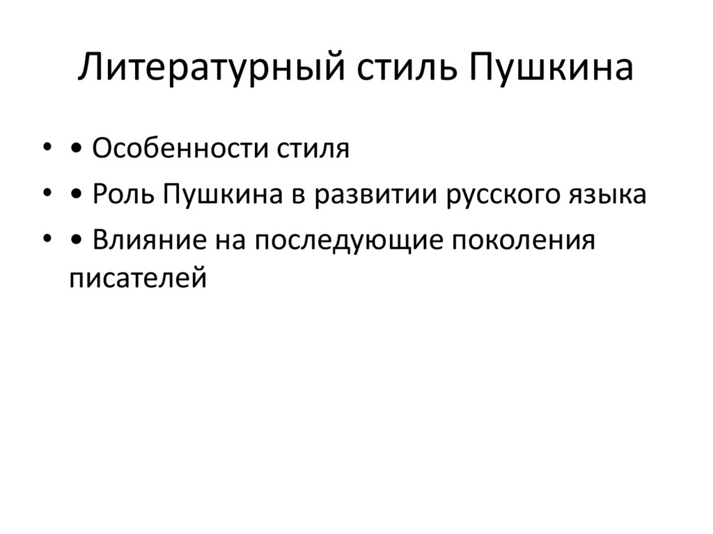 Литературный стиль Пушкина• • Особенности стиля
