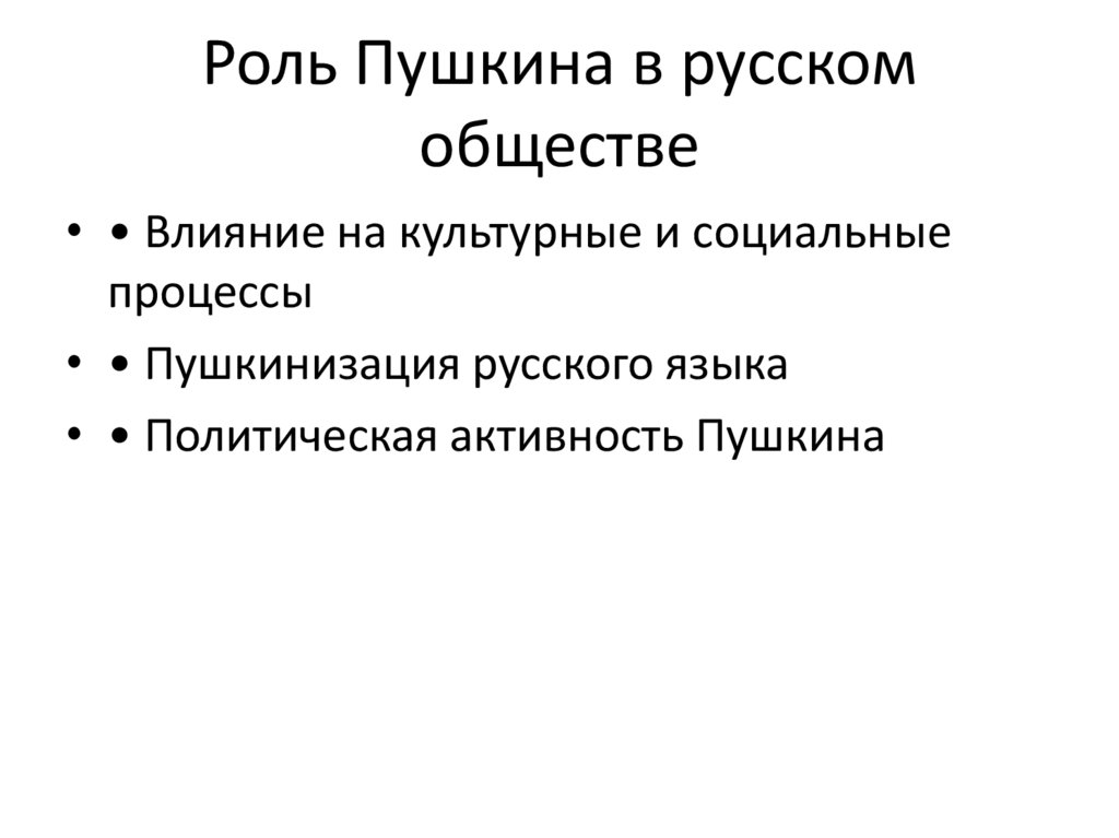 Роль Пушкина в русскомобществе