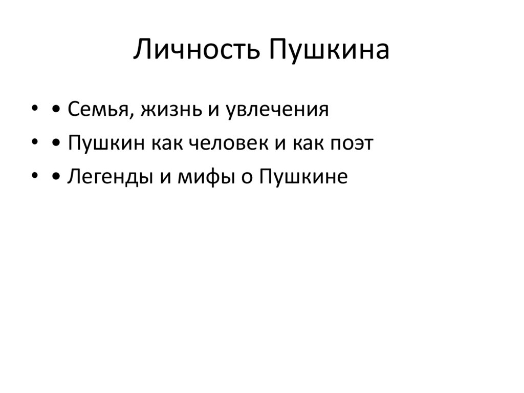 Личность Пушкина• • Семья, жизнь и увлечения