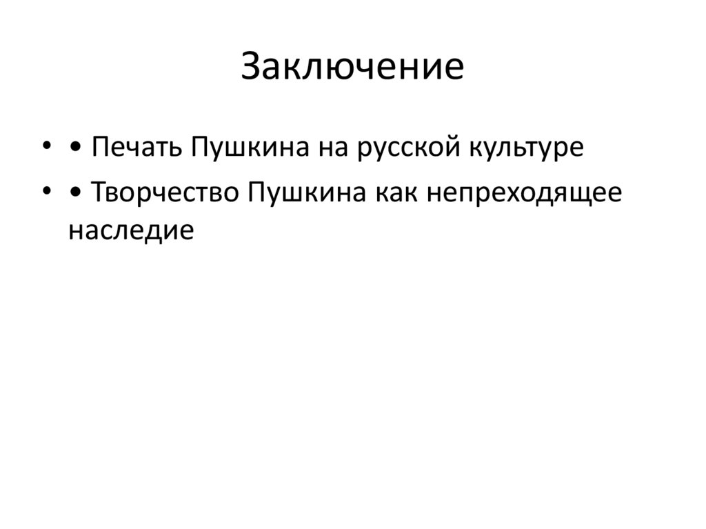 Заключение• • Печать Пушкина на русской культуре