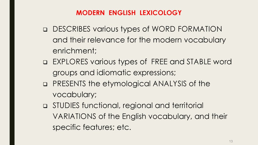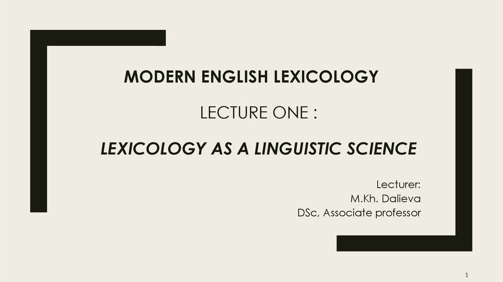 1. Modern English lexicology Lecture One : Lexicology as a linguistic science