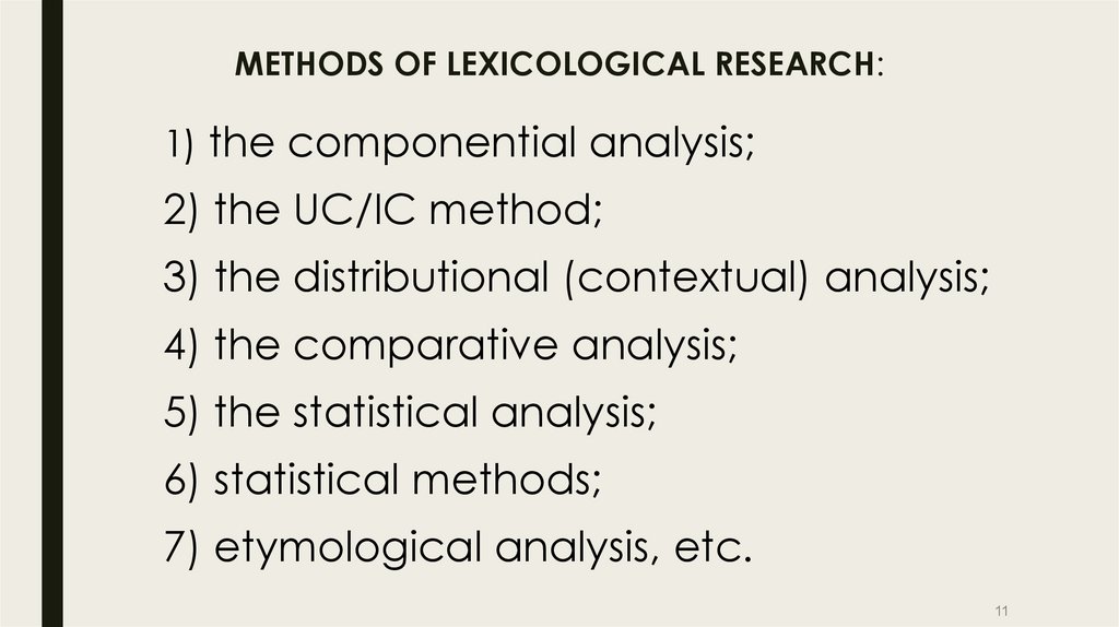 METHODS OF LEXICOLOGICAL RESEARCH:1) the componential analysis;