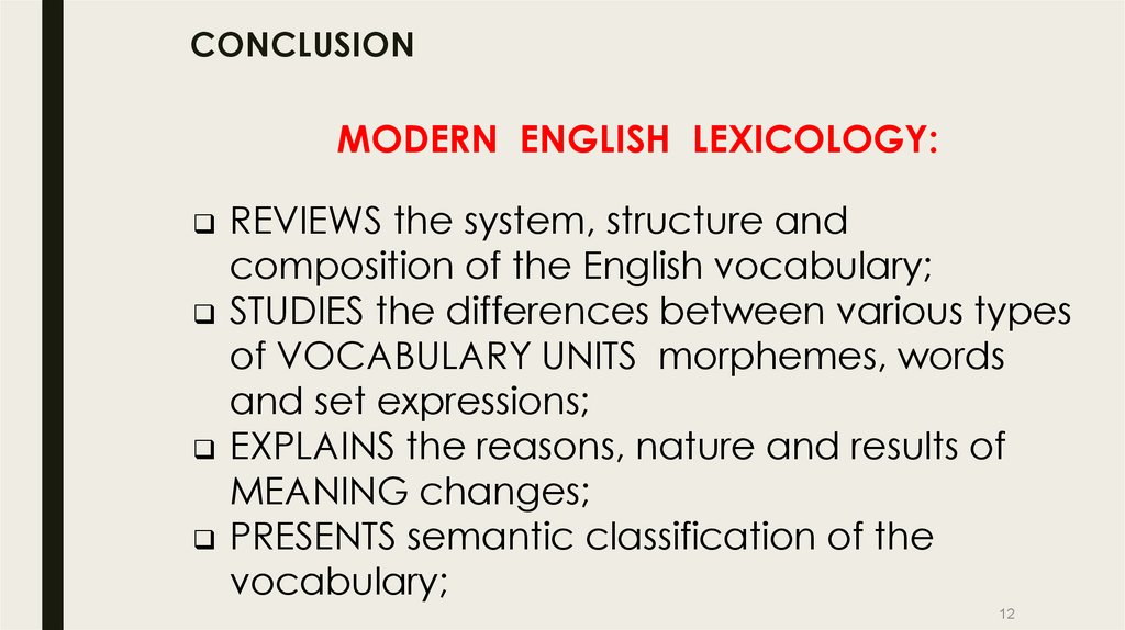 MODERN ENGLISH LEXICOLOGY:REVIEWS the system, structure and