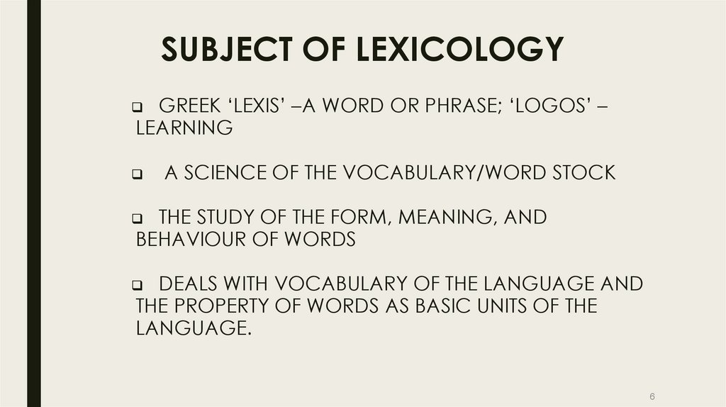 GREEK ‘LEXIS’ –A WORD OR PHRASE; ‘LOGOS’ –LEARNING