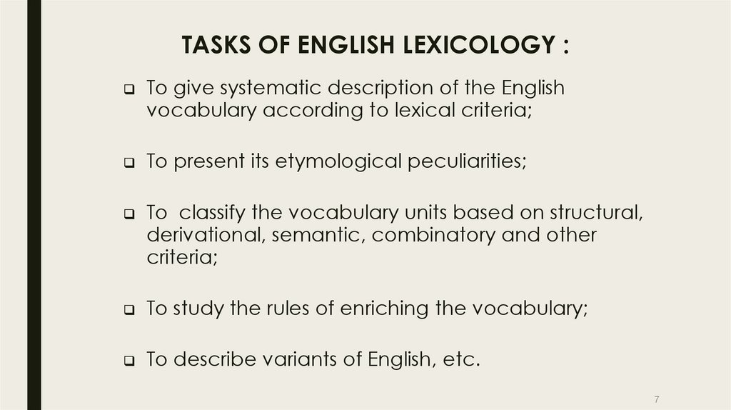 7. TASKS OF ENGLISH LEXICOLOGY :
