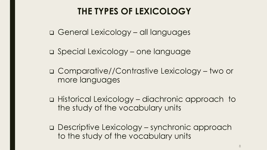 THE TYPES OF LEXICOLOGYGeneral Lexicology – all languages