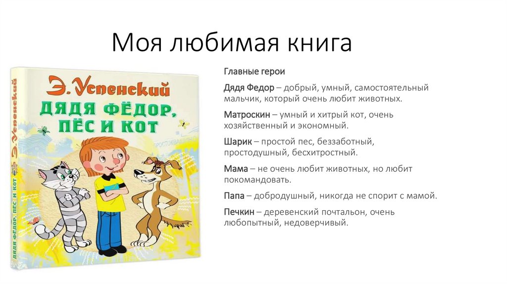 Моя любимая книга Эдуарда Успенского «Дядя Фёдор, пес и кот»