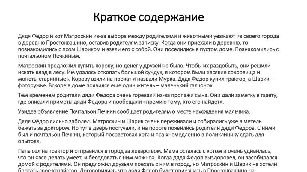 домой с родителями. Он предложил друзьям поехать с ним в город, но Матроскин и Шарик не хотели