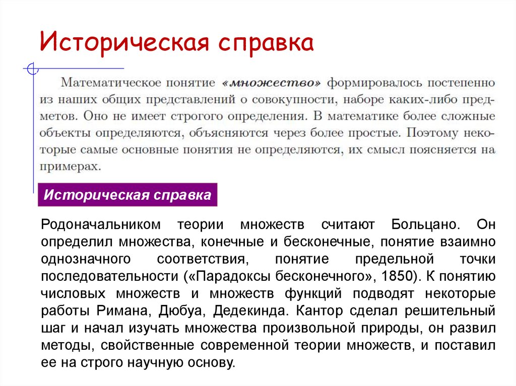 Историческая справкаРодоначальником теории множеств считают Больцано. Он