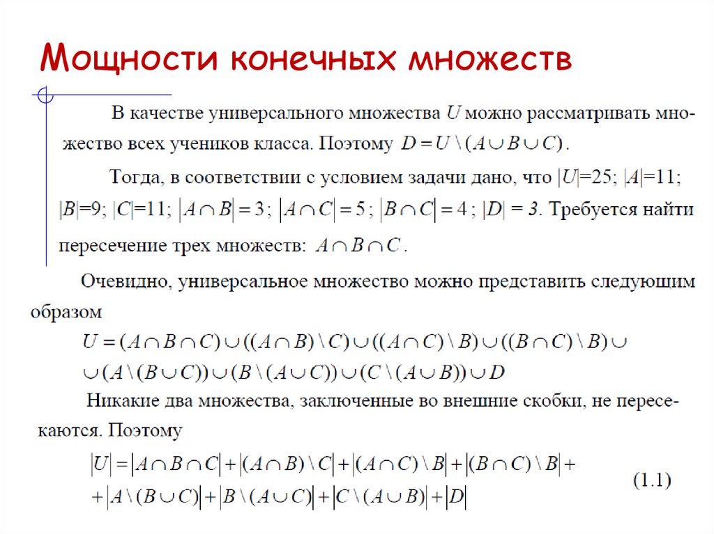 ТеоремаПусть A1 , A2 , ..., An - конечные множества, их мощности