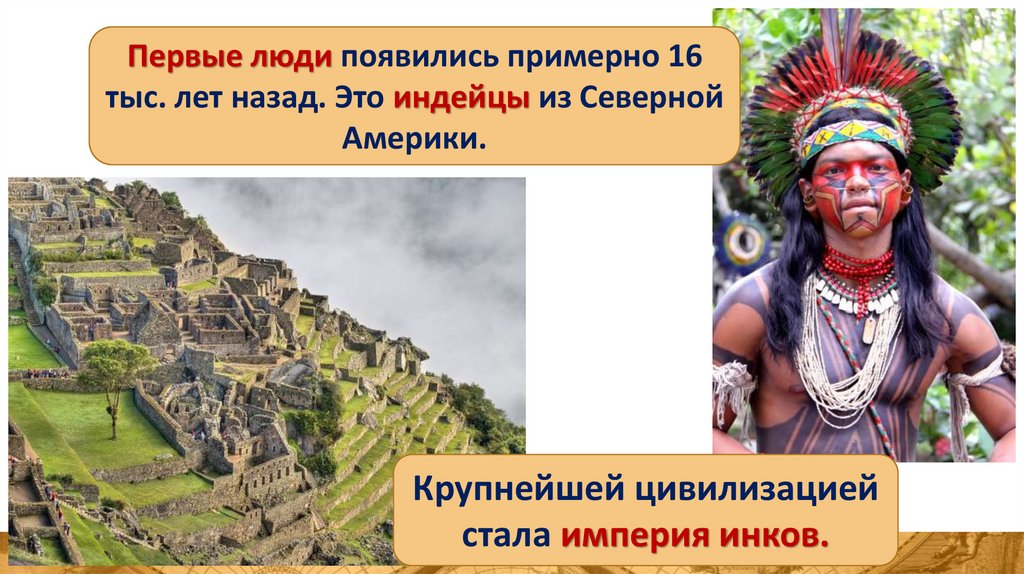 Первые люди появились примерно 16тыс. лет назад. Это индейцы из Северной