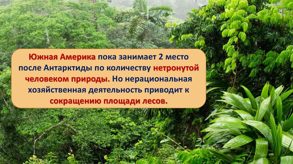 Южная Америка пока занимает 2 местопосле Антарктиды по количеству нетронутой