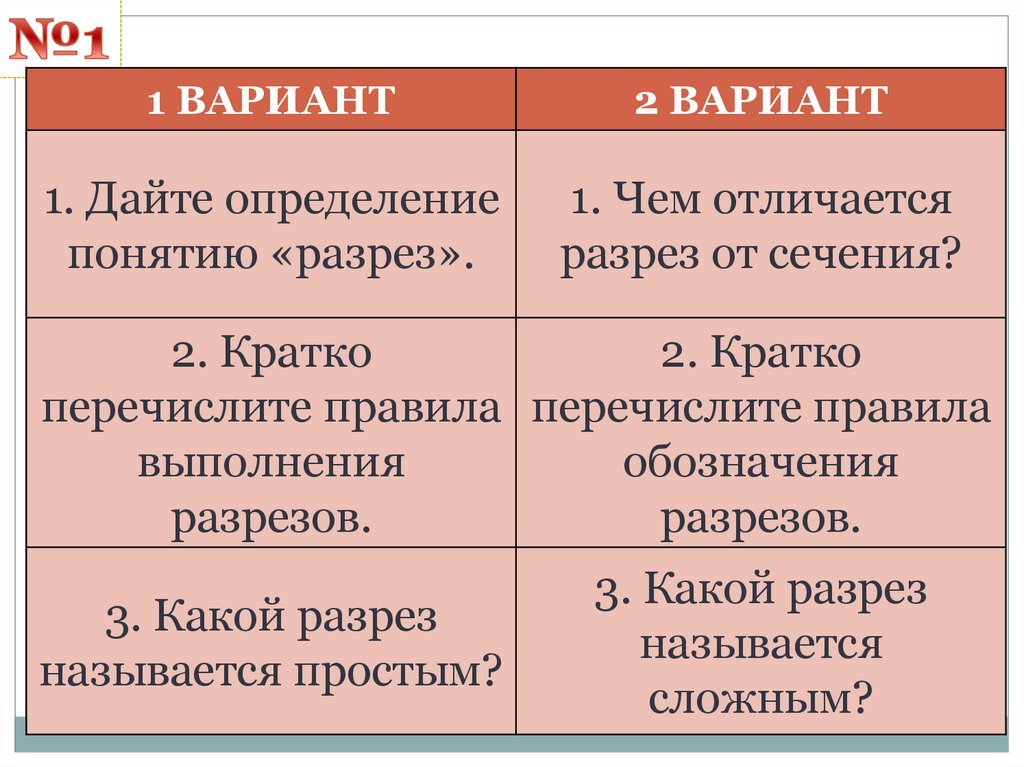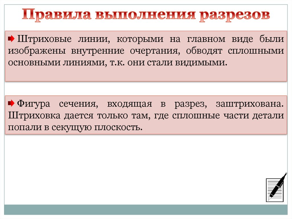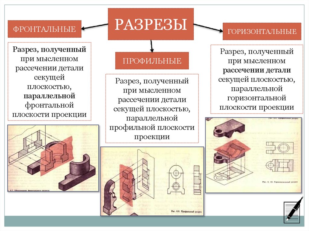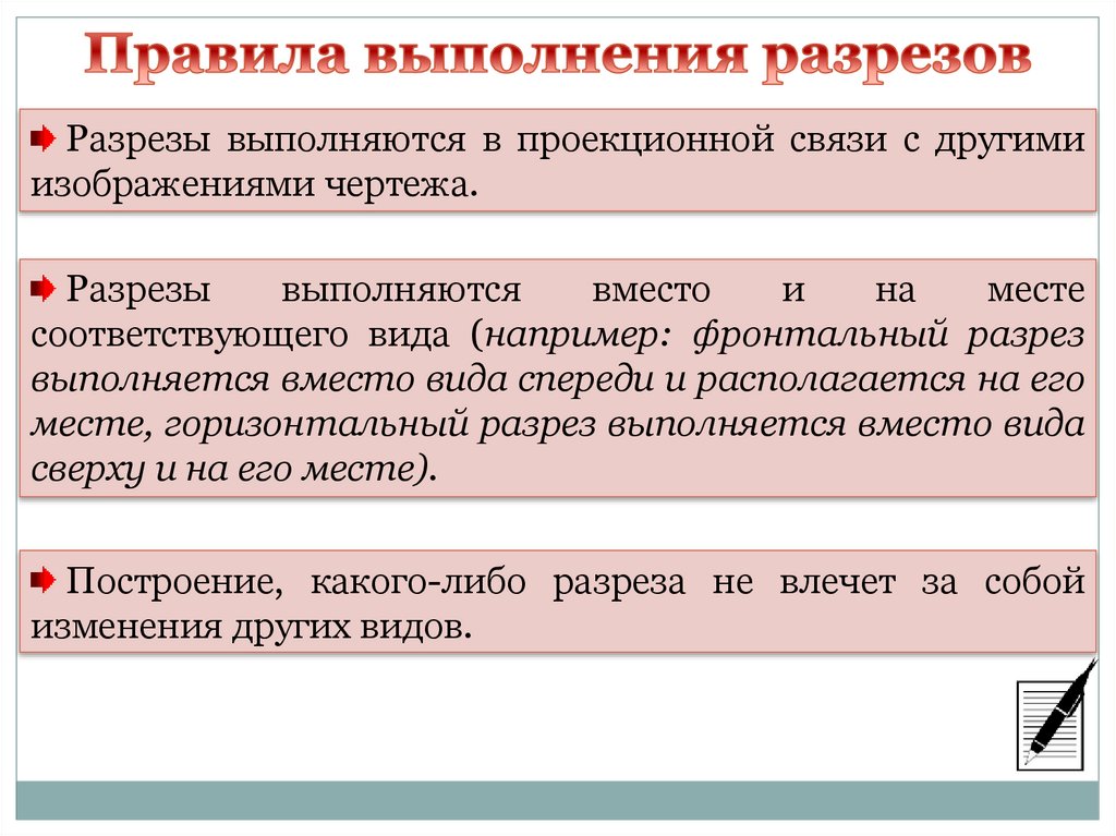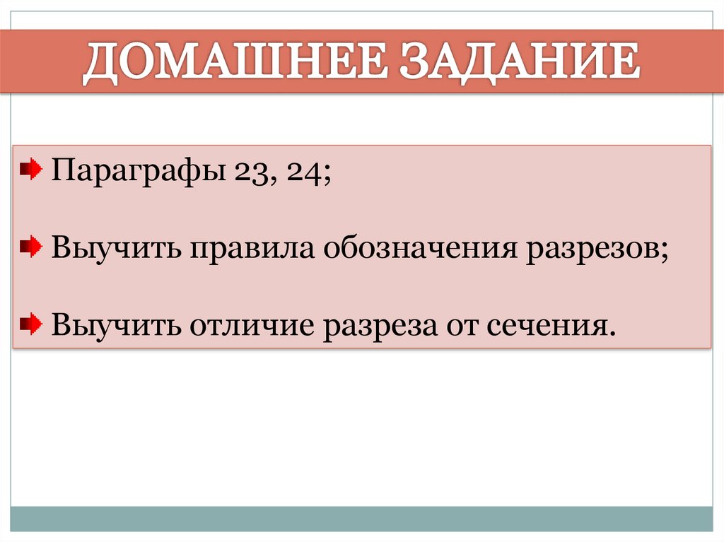 Параграфы 23, 24;Выучить правила обозначения разрезов;
