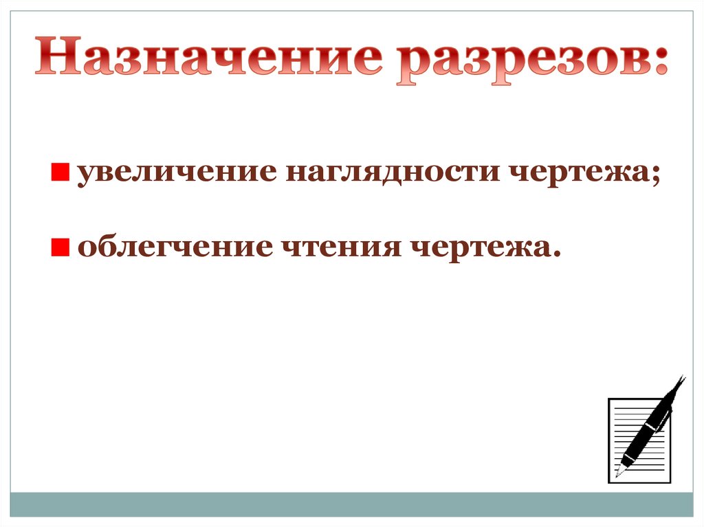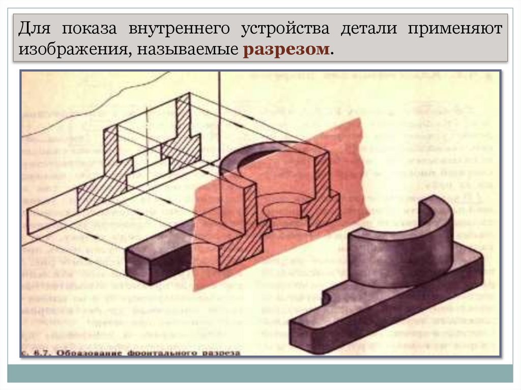 Для показа внутреннего устройства детали применяютизображения, называемые разрезом.