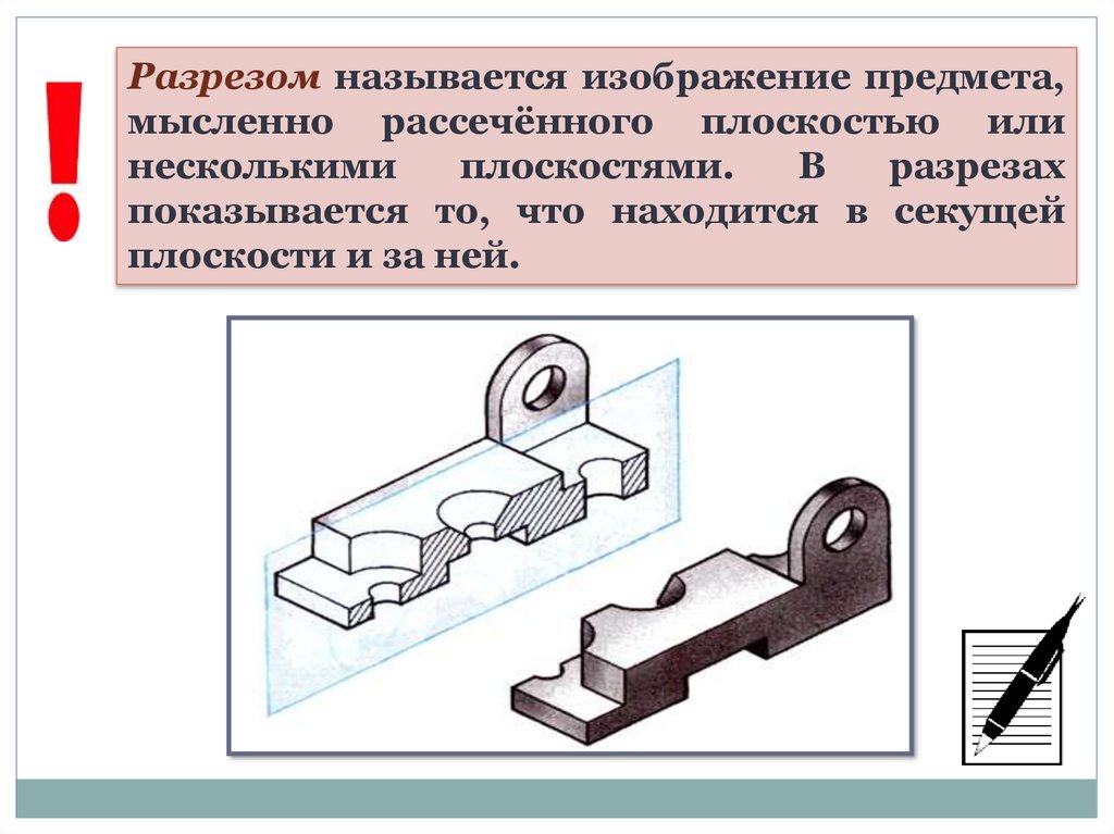 Разрезом называется изображение предмета,мысленно рассечённого плоскостью или