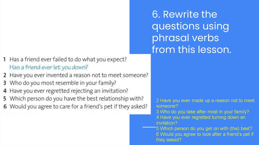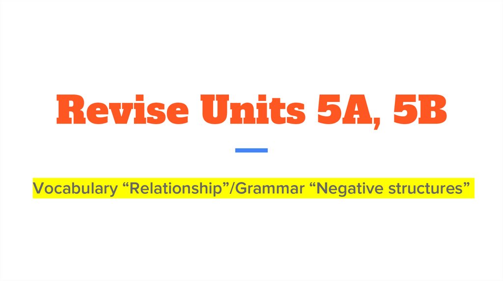 Revise Units 5A, 5BVocabulary “Relationship”/Grammar “Negative structures”