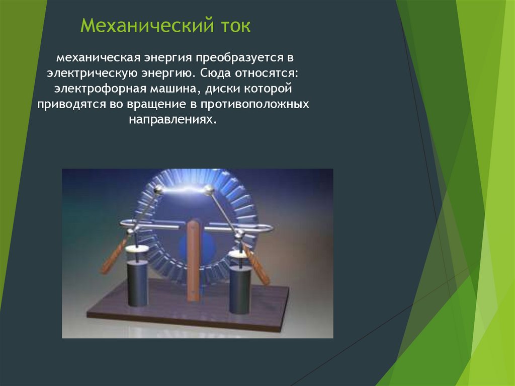 механическая энергия преобразуется вэлектрическую энергию. Сюда относятся: