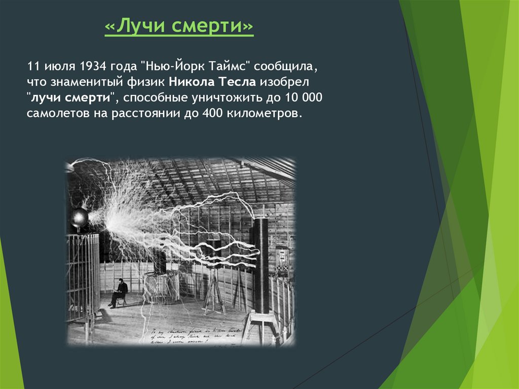 «Лучи смерти»11 июля 1934 года "Нью-Йорк Таймс" сообщила,