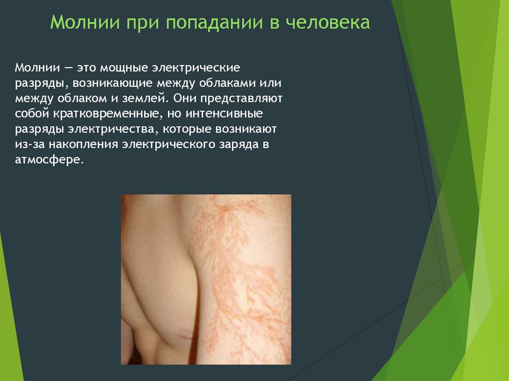 Молнии при попадании в человекаМолнии — это мощные электрические