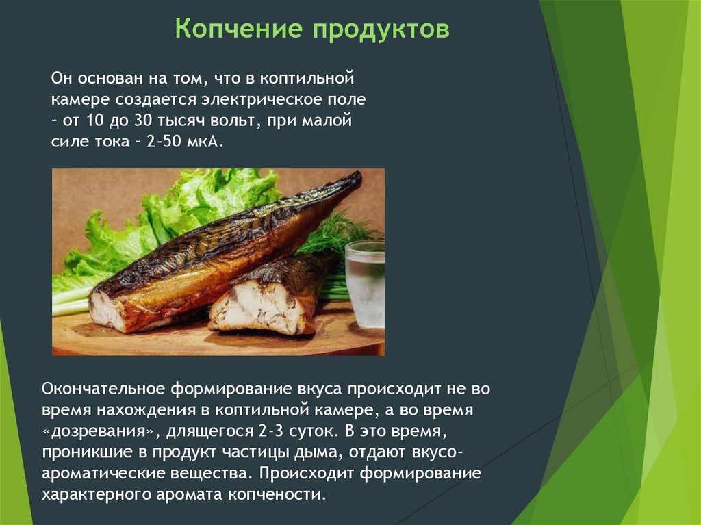 проникшие в продукт частицы дыма, отдают вкусоароматические вещества. Происходит формирование