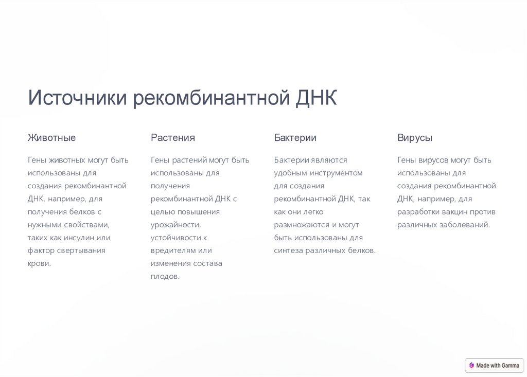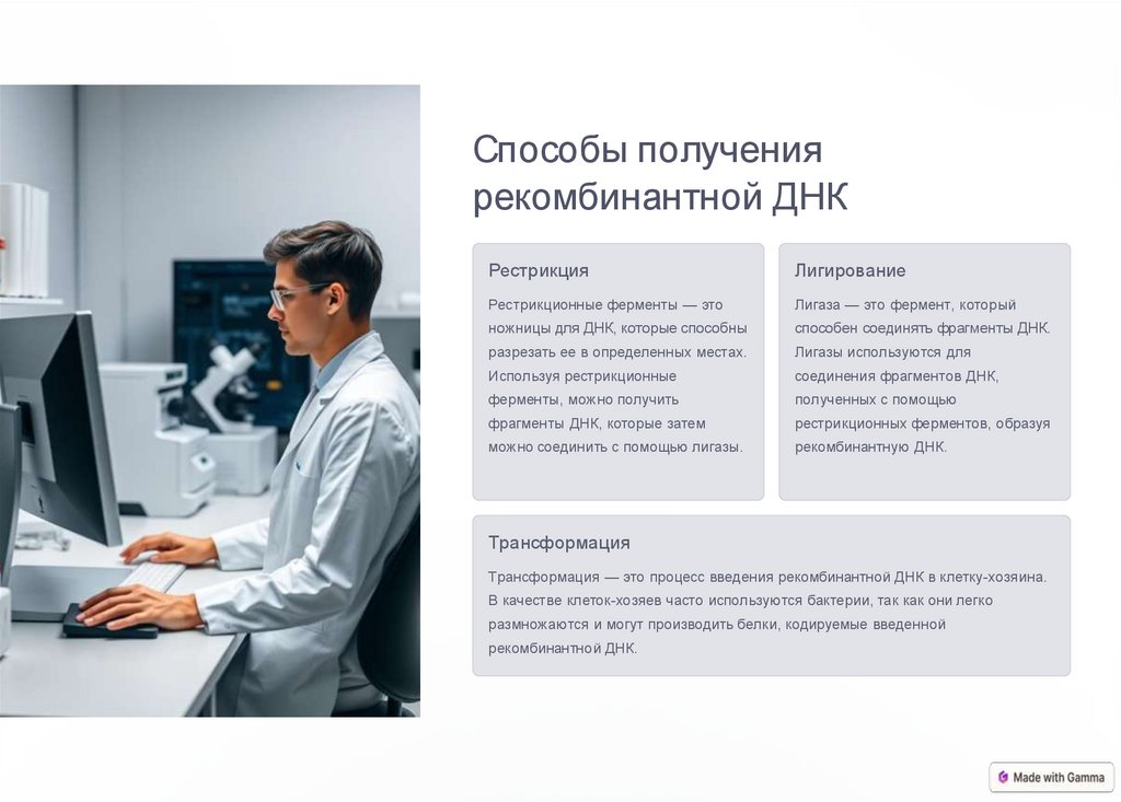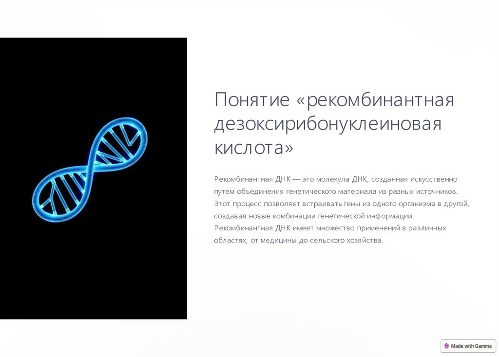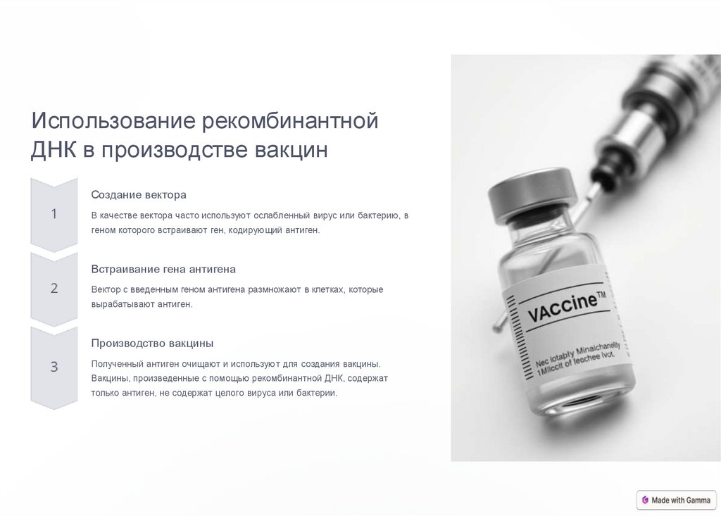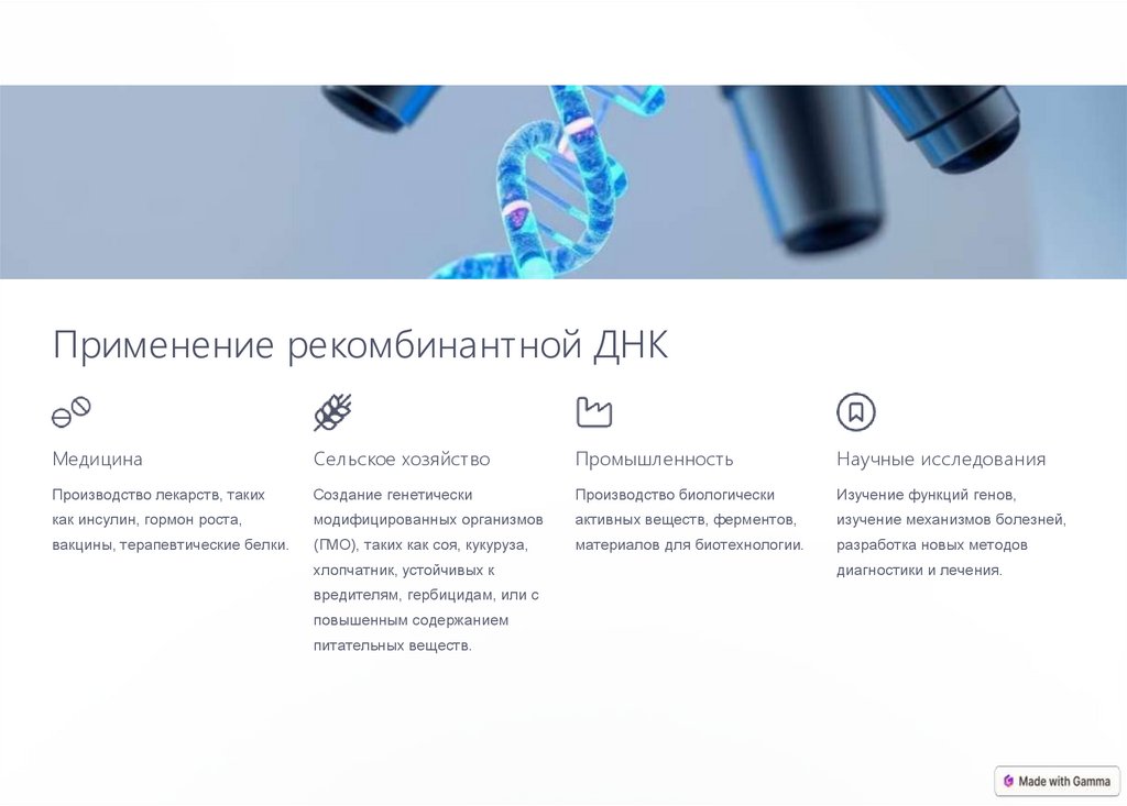 рекомбинантная ДНК используется для производства лекарств, ГМО,