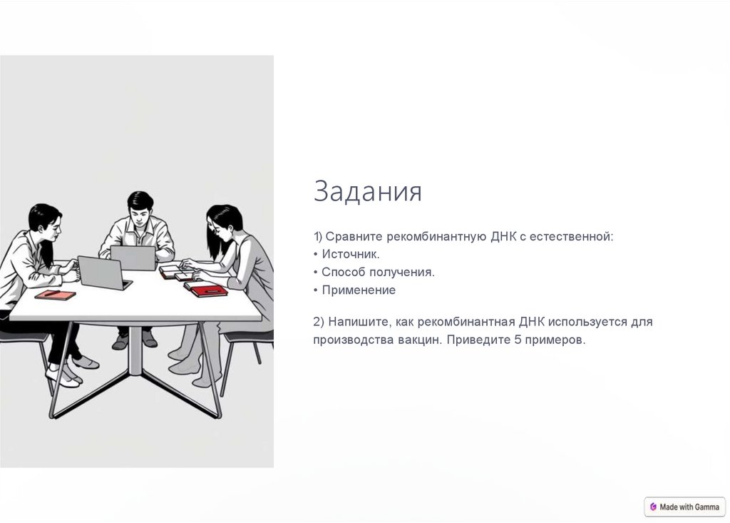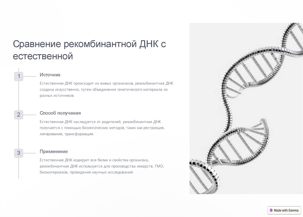 Задания1) Сравните рекомбинантную ДНК с естественной: