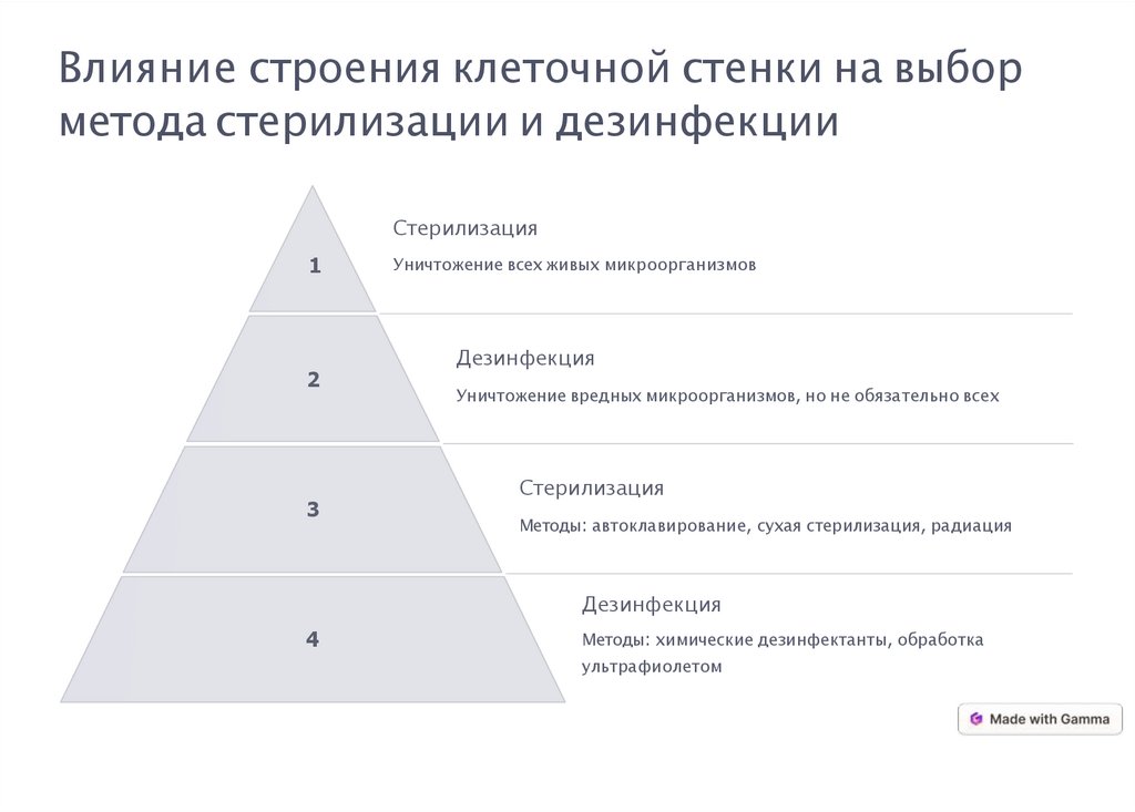 Влияние строения клеточной стенки на выборметода стерилизации и дезинфекции