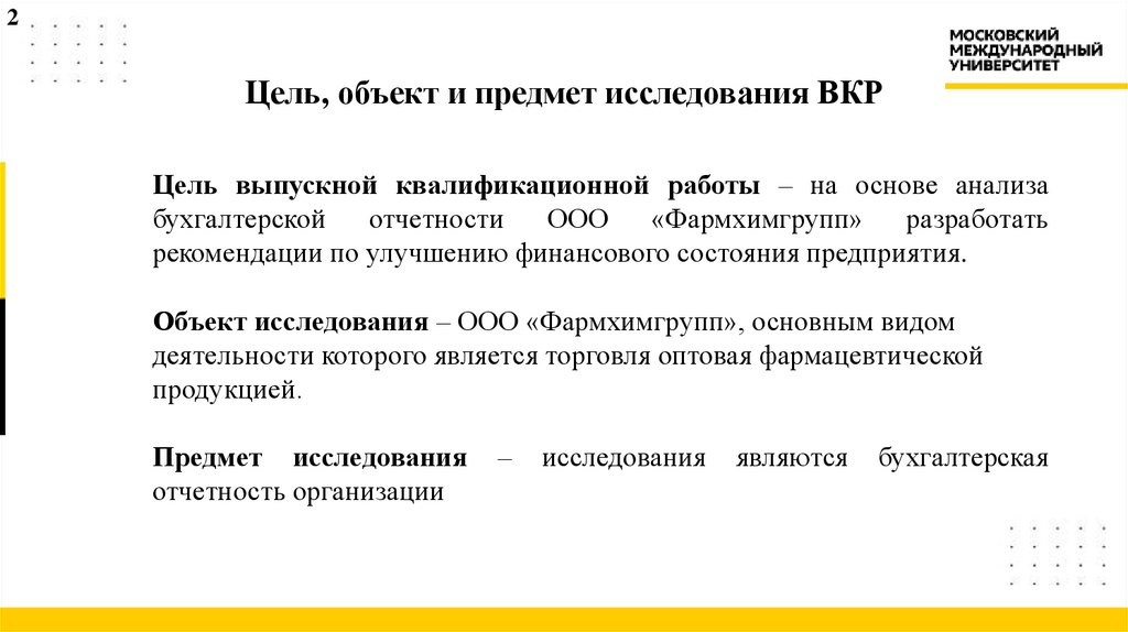 2Цель, объект и предмет исследования ВКР