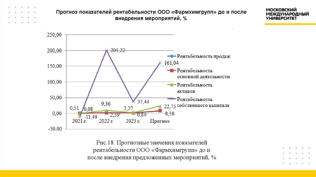 Рис.18. Прогнозные значения показателейрентабельности ООО «Фармхимгрупп» до и