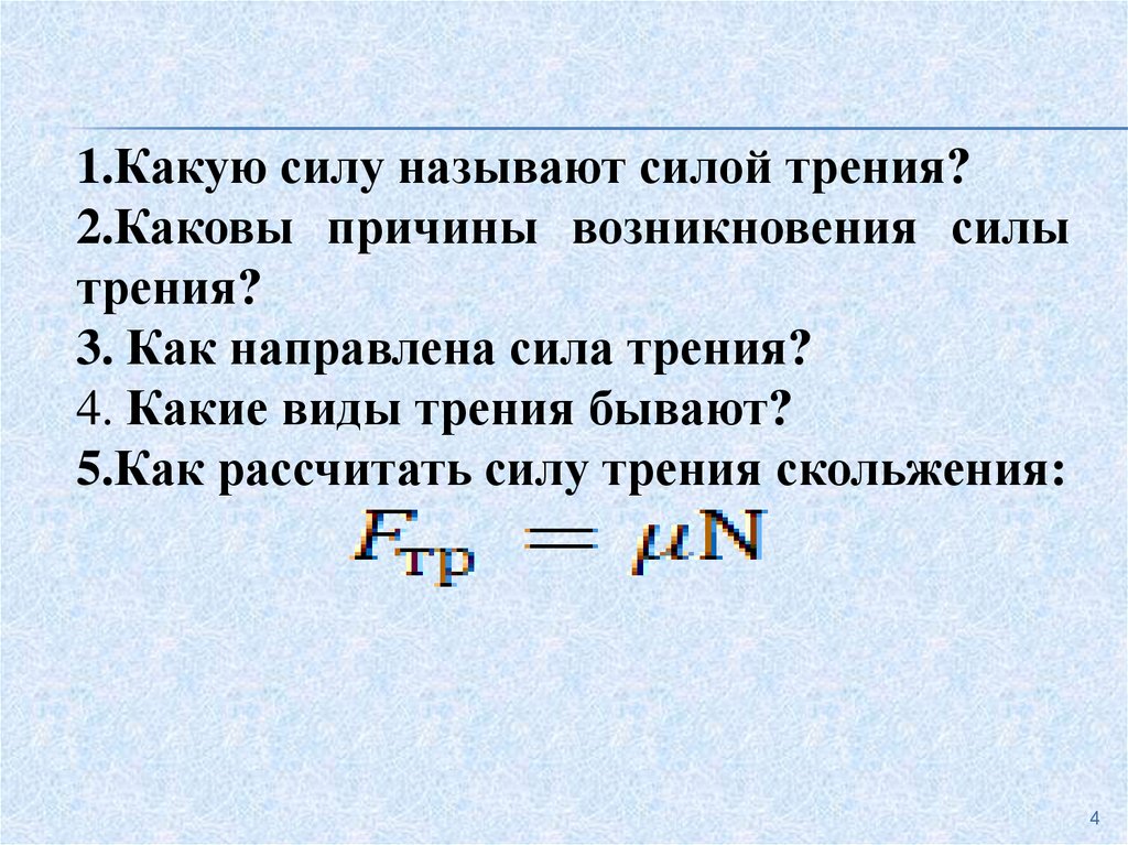 1.Какую силу называют силой трения?2.Каковы причины возникновения силы