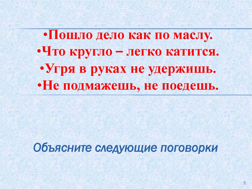 •Пошло дело как по маслу.•Что кругло – легко катится.