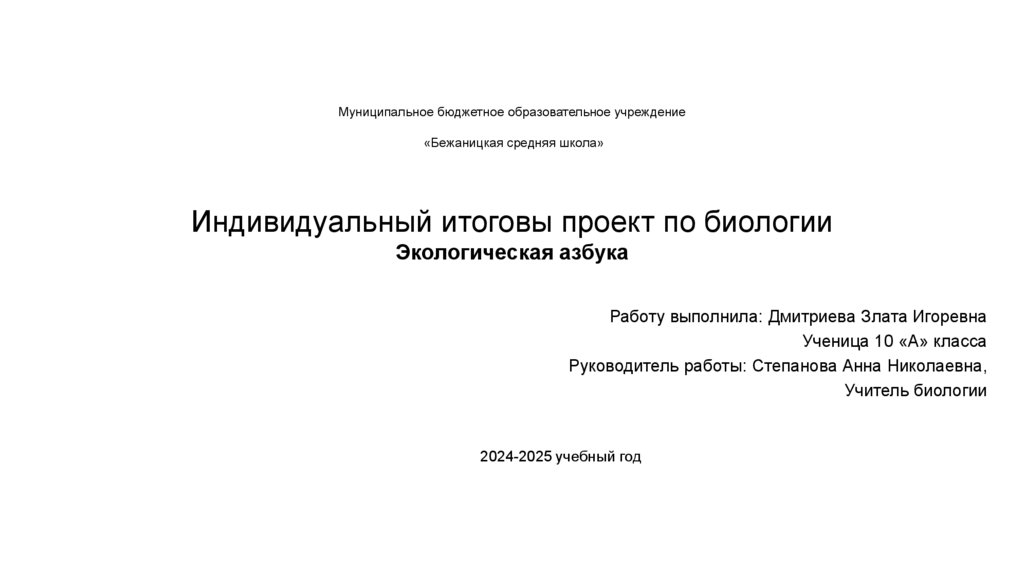 Индивидуальный итоговы проект по биологии
