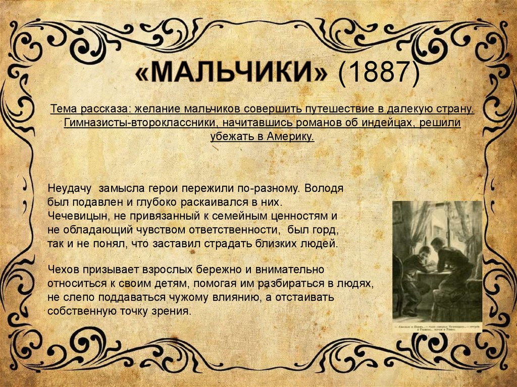 (1887)Тема рассказа: желание мальчиков совершить путешествие в далекую страну.