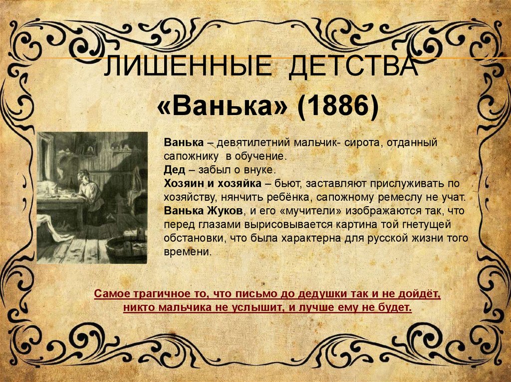 ЛИШЕННЫЕ ДЕТСТВА«Ванька» (1886)