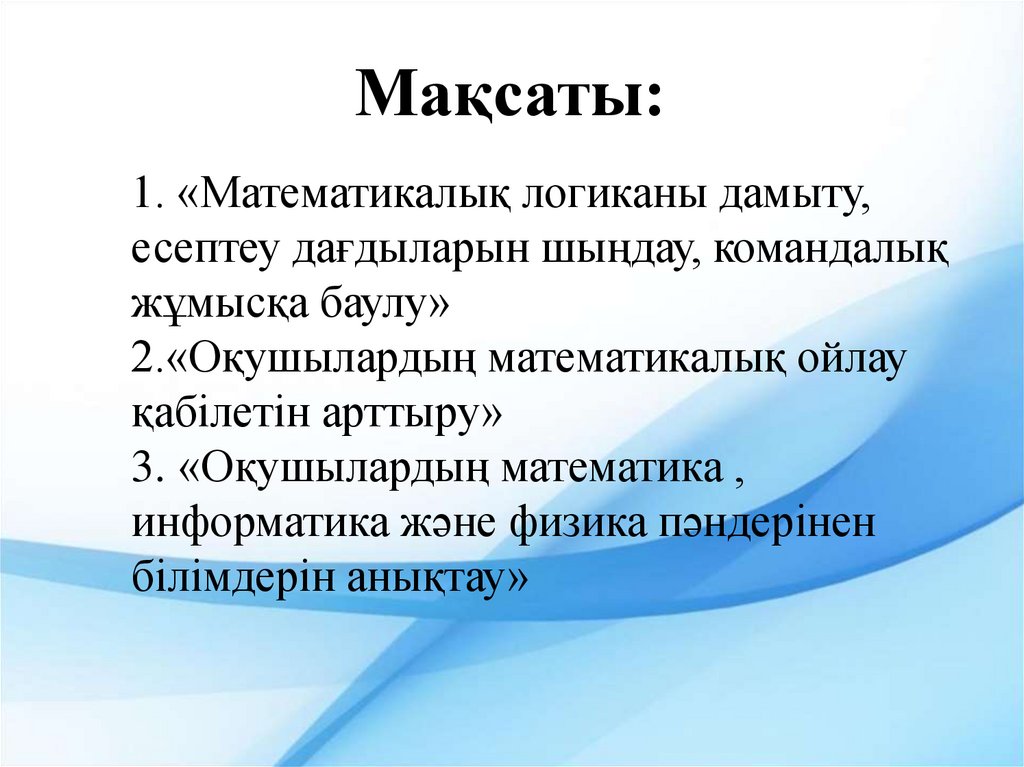 Мақсаты:1. «Математикалық логиканы дамыту,