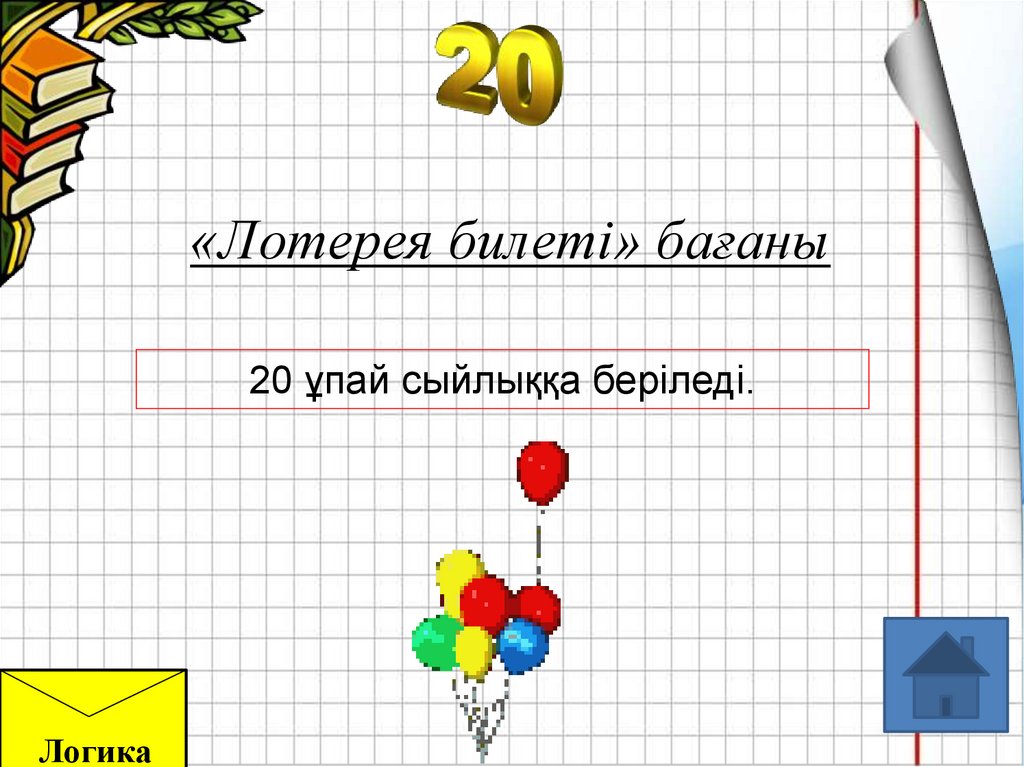 «Лотерея билеті» бағаны20 ұпай сыйлыққа беріледі.